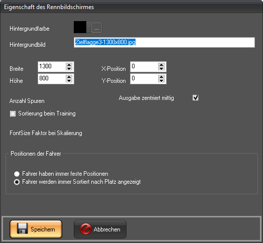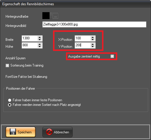 Grundsätzlich wird ein Siegerbildschirm immer mittig auf dem Monitor ausgerichtet. Möchte man jetzt gezielt den Siegerbildschirm in seiner Position „verschieben“, dann muss man einfach im RBS-Editor den betreffenden Siegerbildschirm öffnen und dort dann unter Eigenschaften die Position in Pixel für X und Y eintragen.