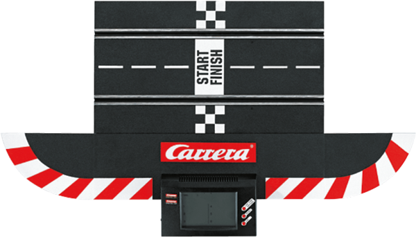 Denn, die BlackBox hatte keine eigene Funktionalität zur Anzeige von Renndaten und bot auch keine Rennmodi, mit denen digitale Rennen verwaltet werden konnten. Carrera brachte also den Rundenzähler mit zwei IR-Empfangsdioden und dem Aufdruck Start Finish auf der angebundenen Standardgeraden.