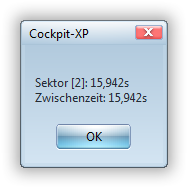 Zu sehen ist jeweils eine Meldung der Zwischenzeitsensoren. Bei Sektor 1 wird zusätzlich kurz gewartet und dann die Zwischenzeiten zurückgesetzt. Im Anschluss ergibt sich eine weitere Meldung, die den aktuellen Wert von Cockpit.Sektorzeit und Cockpit.Zwischenzeit anzeigt.