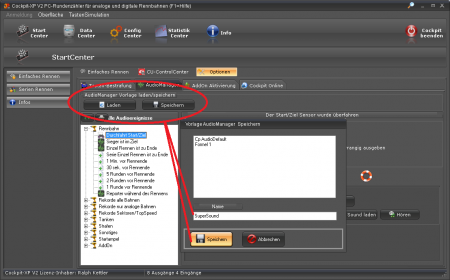 Hier kann man jetzt Audioereignisse einzelnen Events wie Rennbahn, Rekorde, Tanken, Addons usw. zuordnen.
