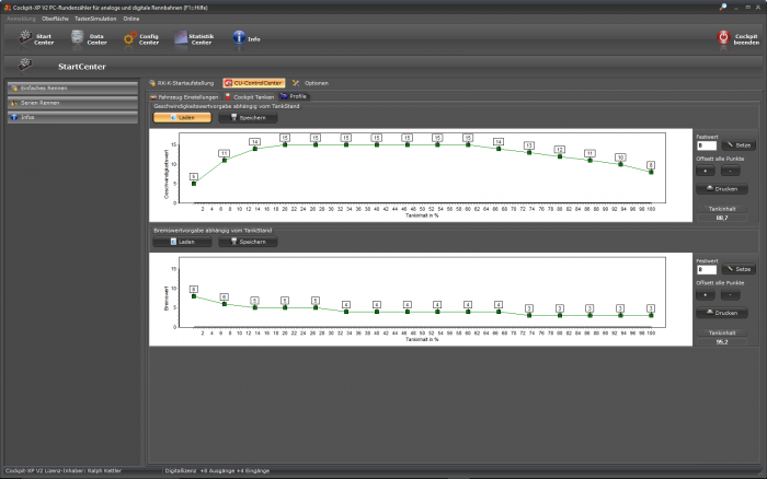 Die Geschwindigkeits- und Bremsprofile verändern je nach Tankinhalt die Geschwindigkeits- und die Bremswerte. Somit kann man ein immer leichter werdendes Auto simulieren, welches bei leeren Tank schneller wird und besser bremst.