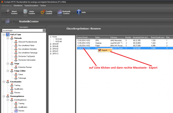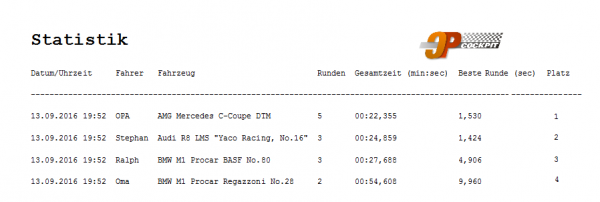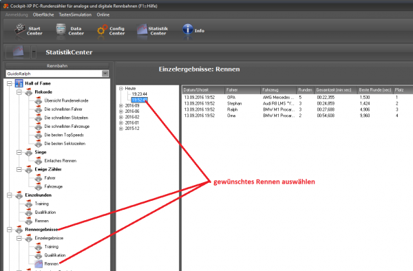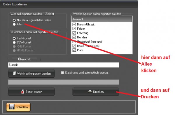 Drucken von Renn-Ergebnissen aus dem StatistkCenter