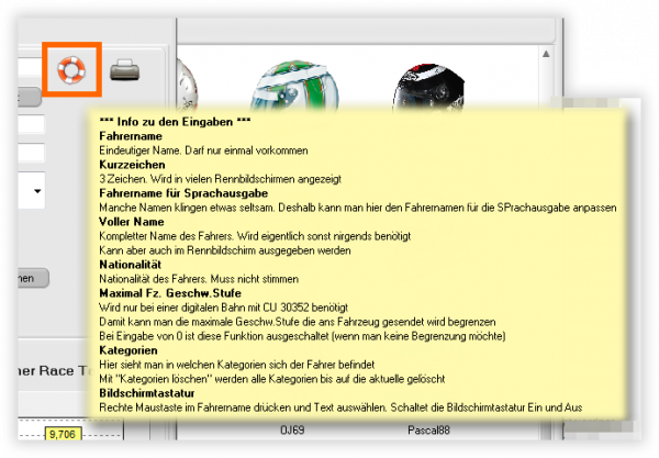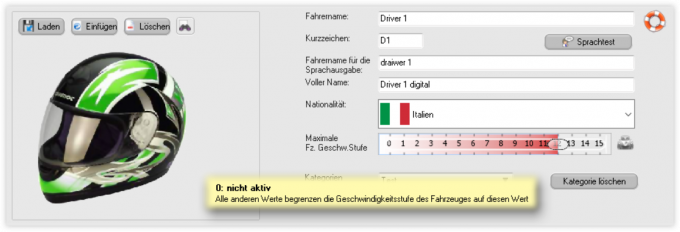 Bleiben noch das Listfeld Kategorien und das Fahrerbild, um die Erklärung zum oberen Teil des Fensters abzuschließen.