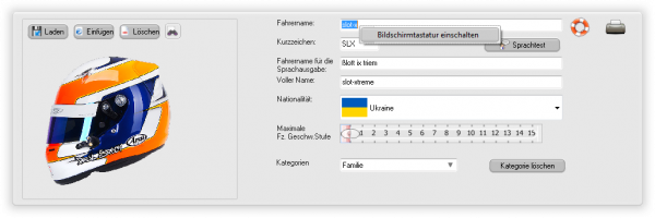Nachdem ein nicht vorhandener Fahrername gefunden ist, einfach mal mit der rechten Maustaste in das Feld klicken und die Bildschirmtastatur aufrufen.
